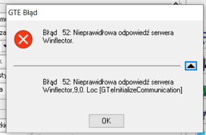 Błąd 52: Nieprawidłowa odpowiedź serwera winflector 9.0. Loc[GTeInitializeCommunication]