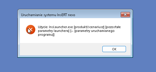 Użycie: InsLauncher.exe [produkt/scenariusz] [pozostałe parametry launchera] [-- [parametry uruchamianego programu]]Załączam screen.Czy to kwestia ustawień?